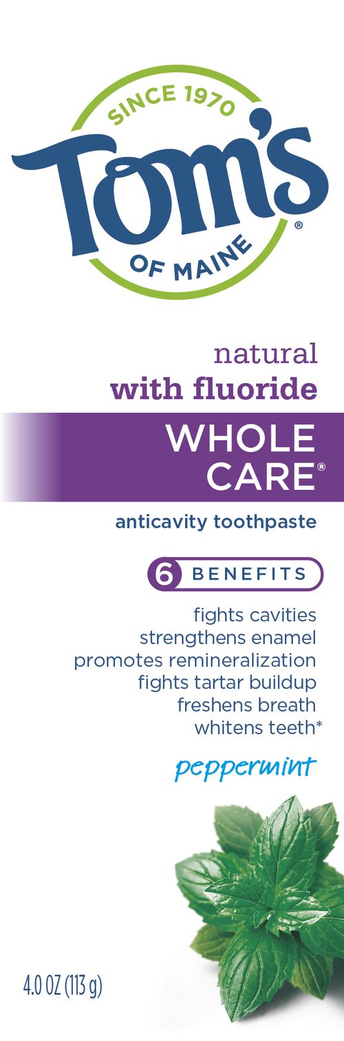 Tom's of Maine Whole Care Toothpaste, Peppermint, 4.0oz