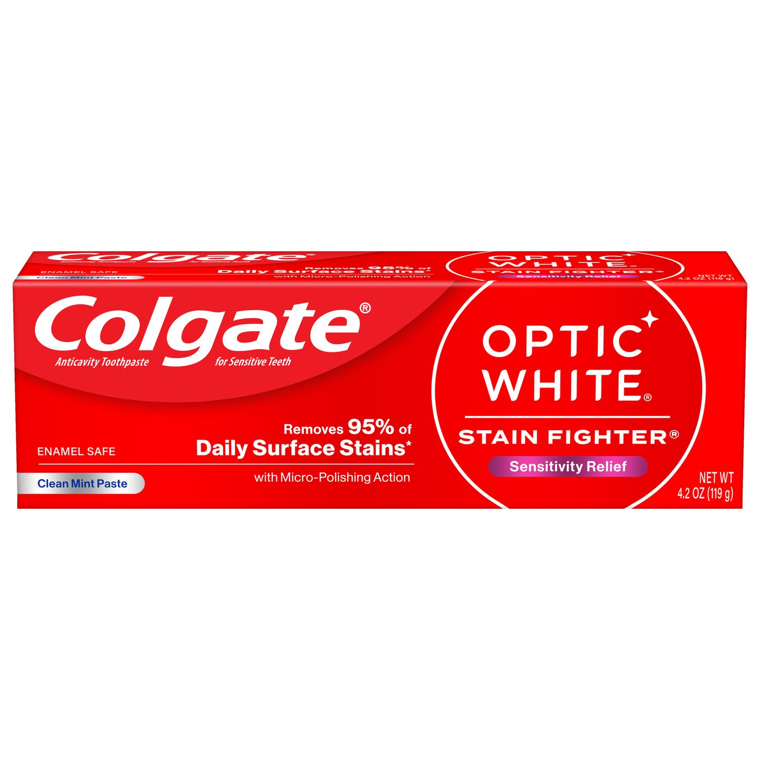 Colgate Optic White Stain Fighter Sensitivity Relief Whitening Toothpaste, Clean Mint Paste
